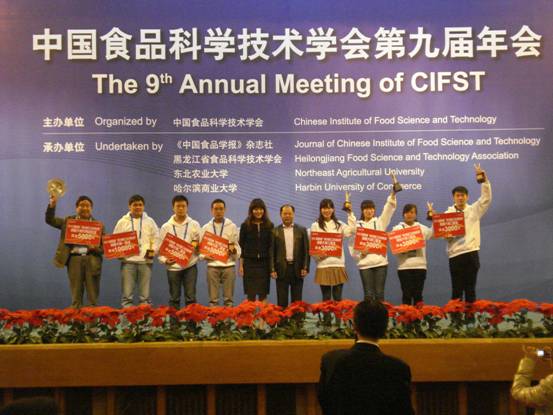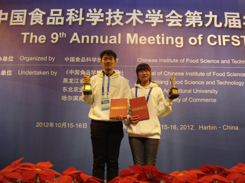 2012年10月15日,中国食品科学技术学会第九届年会在哈尔滨举行。来自国内外相关高等学校、科研院所近400名专家学者和100余名食品企业代表齐聚哈尔滨,共同研讨食品科学、食品安全、食品工程领域的前沿性和前瞻性科学技术问题,以期推动食品工业的科技进步与行业发展。食科学院中英合作食品质量与安全专业的李睿、张琳琳同学应邀参加中国食品科学技术学会第九届年会及中国食品科学技术学会第五届研究生论坛等会议。