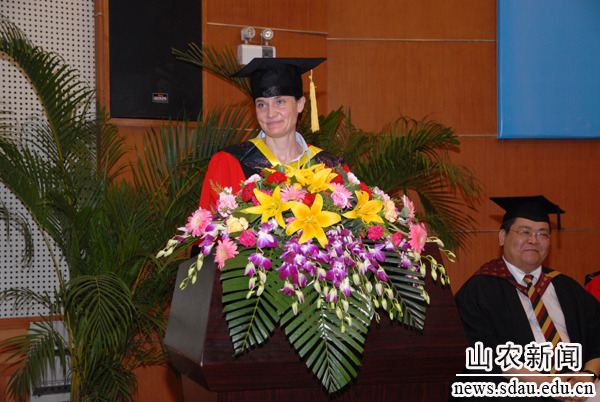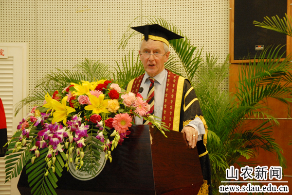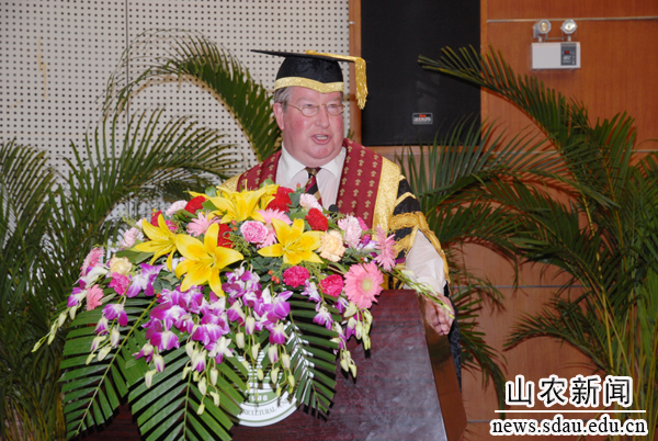 西蒙�q波特代表本人及皇家农学院院长感谢来宾及家长前来参与学生毕业典礼及学位授予仪式,向所有毕业生取得的优异成绩表示祝贺。他说,这次典礼不仅是学生学术成果的展示,也证明了皇家农学院和山东农业大学的合作是富有成果的。希望每个学生心中对皇家农学院的感情能够长久,所接受的教育能够帮助大家在以后的事业中取得出色的成就,成为山东农业大学及皇家农学院的骄傲。