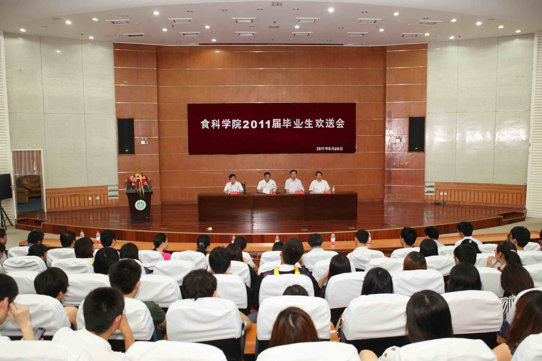 6月29日下午,校本部文理大楼学术报告厅充满喜庆氛围。食品科学与工程学院2011届毕业生欢送会暨学士学位授予仪式在此隆重举行。食科学院全院教职工,全院毕业生以及在校生代表欢聚一堂,热烈欢送426名应届毕业生圆满完成本科学业,即将愉快走上新的学习工作岗位。