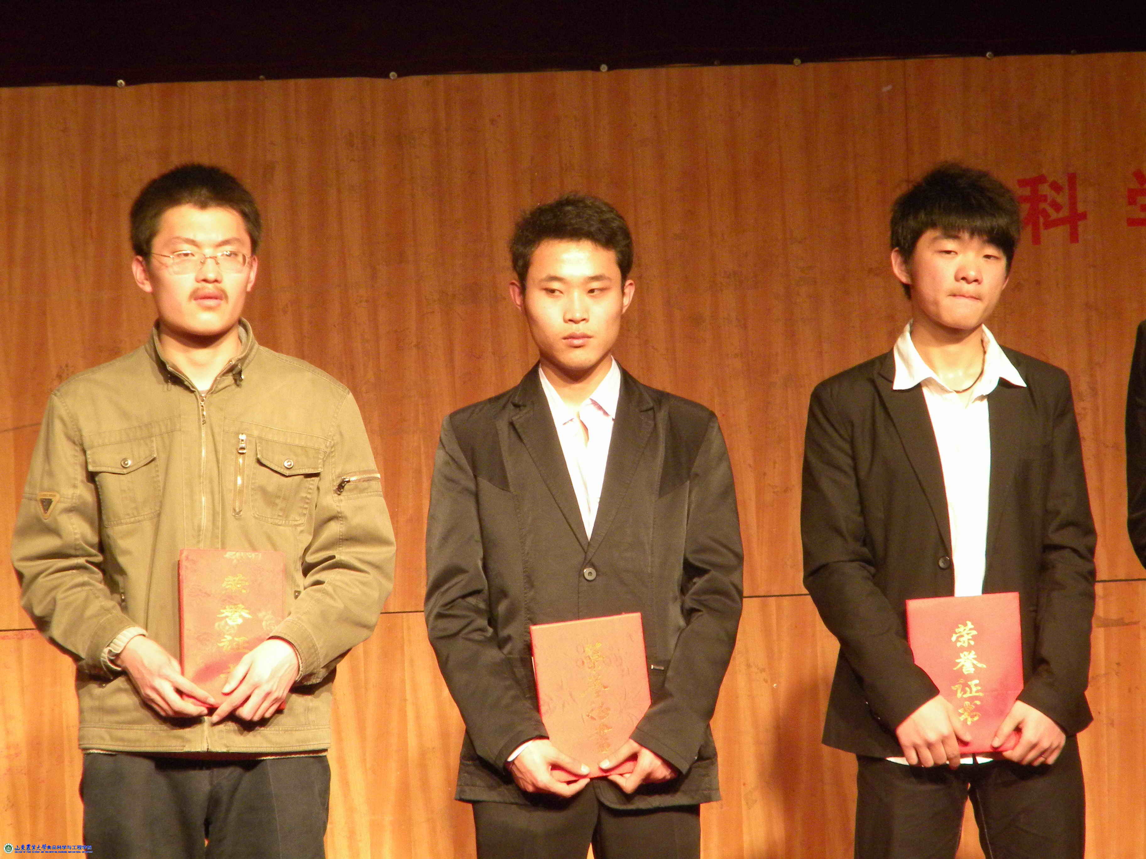 ![]() 4月25日晚,南校区第一学术报告厅彩球高挂,洋溢着欢乐的气氛,由食科学院举办的“明日之路”主题晚会暨五四先进表彰晚会在此举行。食科学院全体学生工作负责人与到场的同学们一同观看了晚会,并为五四先进集体和个人颁了奖。 伴随着歌曲《第一天》的欢快节奏,活泼舞步当晚晚会拉开了帷幕。晚会节目形式花样繁多,高潮迭起,并巧妙的融入了中西文化,并动静相宜,为现场的观众带来了视觉和听觉上的双重享受。旋舞篮球,表演者在动感的音乐中玩炫着篮球,篮球在表演者的手中被赋予了生命。上下穿梭的篮球,伴着爵士舞表演者摇曳的身姿,台下爆发了雷鸣般的掌声,现场气氛达到高潮。小品《招工》,用另类的视角解读了现代求职的种种百态,充足的笑料引得了现场同学们的笑声不断。民族器乐演奏《彩云追月》,有效的弘扬了我国的传统文化。富含异域风情的《Because of you》,激情澎湃的演绎着唯美的感情。在《我就是李小龙》的音乐下,由双节棍联盟带来的双节棍表演,双节棍在表演者的手中变换着、交叠着,观众叫好声不断,释放了全场的激情。“相约在银色的月光下相约在温暖的情意中”,《相约98》的真情演绎,将全场观众带到了浓浓的柔情中。 在晚会中,对在上学期表现突出的先进集体和先进个人进行了表彰。学院表彰了14个优秀团支部、9个文明宿舍、2支院优秀球队、12名学习标兵、3名励志标兵、2名科技创新标兵。随后优秀学生代表作了典型发言,大四学生孔嬴积极进行科研创新获得国家一项专利被评为学院科技创新标兵,他用朴实的话语为师弟师妹们传授了经验,并表达了对学院和同学的良好祝愿。 本次活动宣传表彰先进青年学生典型,充分展示我院团员青年在党组织的领导下成长进步的良好风貌,进一步弘扬伟大的"五四"精神,传承共青团的优良传统,团结带领广大团员青年在“农大精神”的指引下中贡献青春。 ![]() 科技创新标兵:国家专利获得者 孔嬴(中) ![]() |