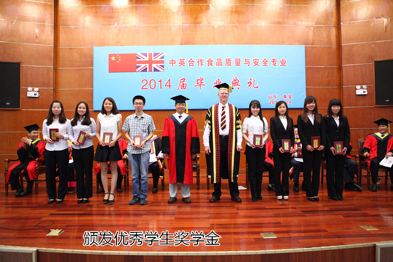 据悉,自今年开始,英国皇家农业大学设立奖学金,用于奖励大学四年英方所开设课程学分绩点专业前5%的学生,其中一等奖学金每人5000元,二等奖学金每人3000元。在本届毕业典礼上,张宪省和Jonathan Turner共同为获奖学生颁发奖学金。