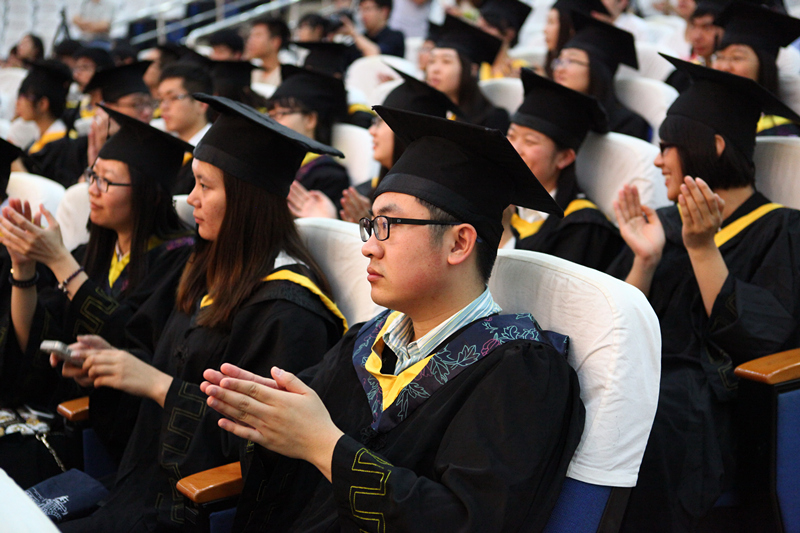 出席毕业典礼的嘉宾为每位毕业生颁发毕业证书,向他们顺利完成学业表示祝贺。2014届中英专业毕业生173人,截止6月18日,考取国内研究生57人,出国20人,签约就业87人,一次性就业率为94.79%。