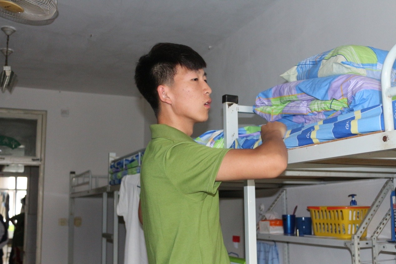 学院对宿舍卫生要求很严,每天都会查卫生,好习惯从大学的第一天开始养成吧,我们早上起床的第一件事便是把被褥叠的整整齐齐,然后才是洗脸刷牙。