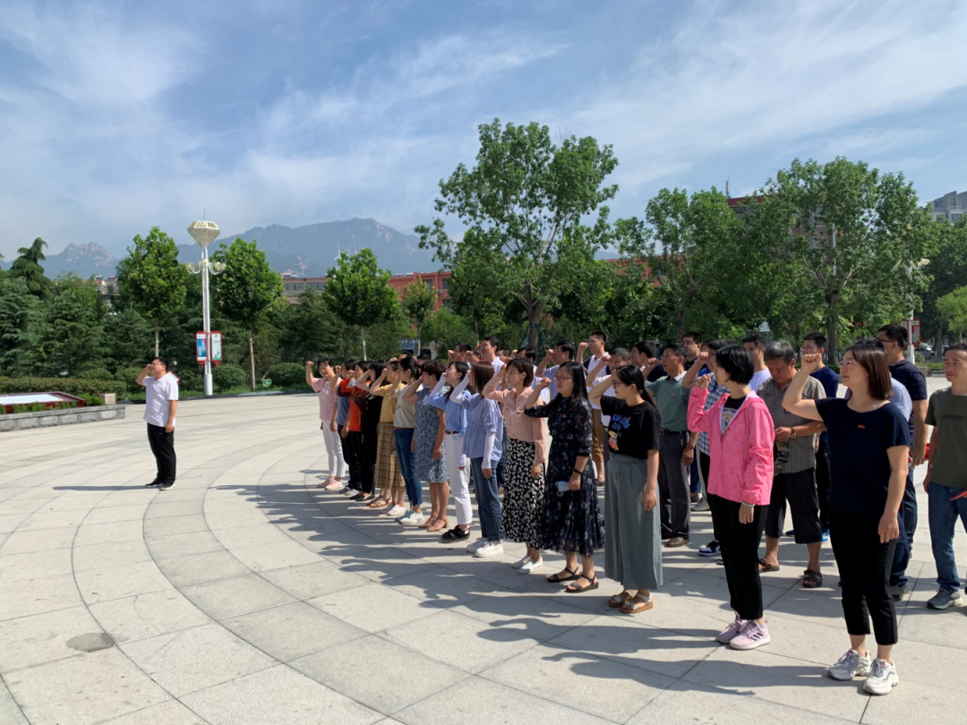 7月1日上午,食科学院41名教工党员来到泰安市南湖党建文化主题公园举办庆祝中国共产党成立99周年主题党日活动。