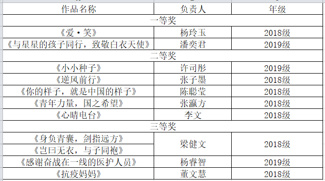 本次大赛分两期举行,共收集到了来自学院1819级同学的多份作品,一个个精心剪辑的视频展现了人与人心灵的碰撞,反映了我们成长中可能存在的心理问题,并给予了我们鼓励,同时也彰显了一位位冲锋在前线的抗疫英雄的牺牲精神。