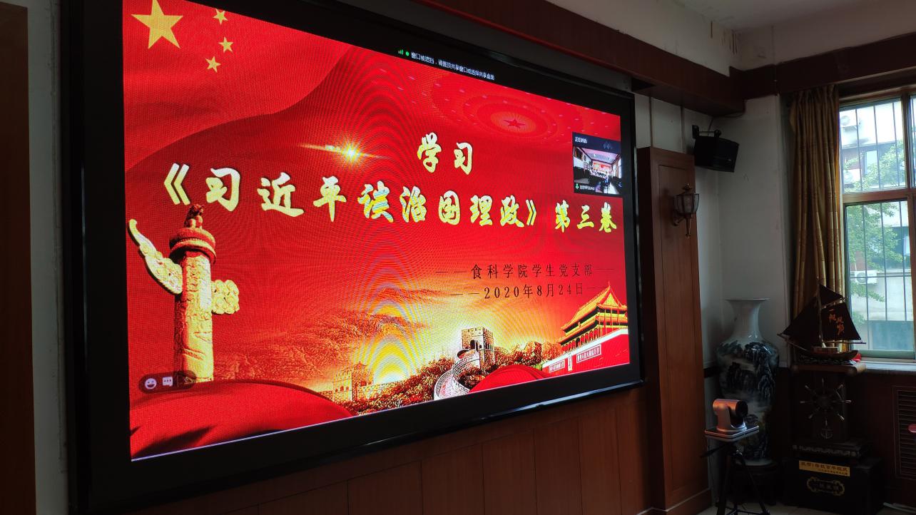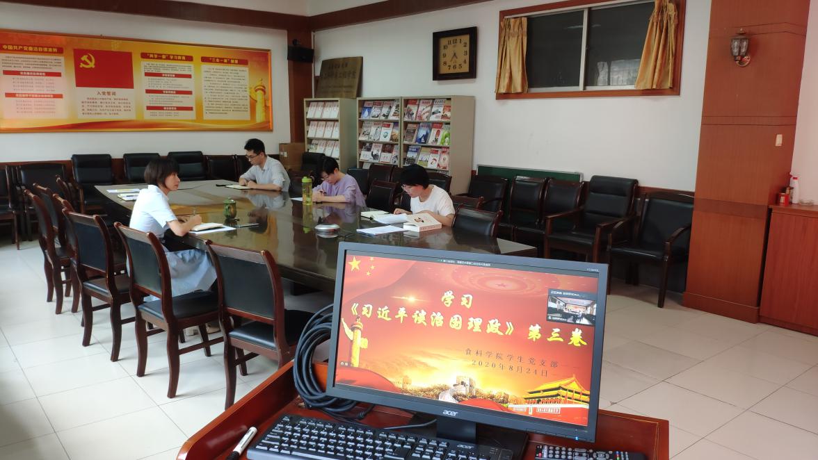 8月25日,食科学院学生党支部召开集体学习会,专题学习《习近平谈治国理政》第三卷。学院党委副书记于小艳主持会议,学生党支部委员参加,学生党员线上同步参与。