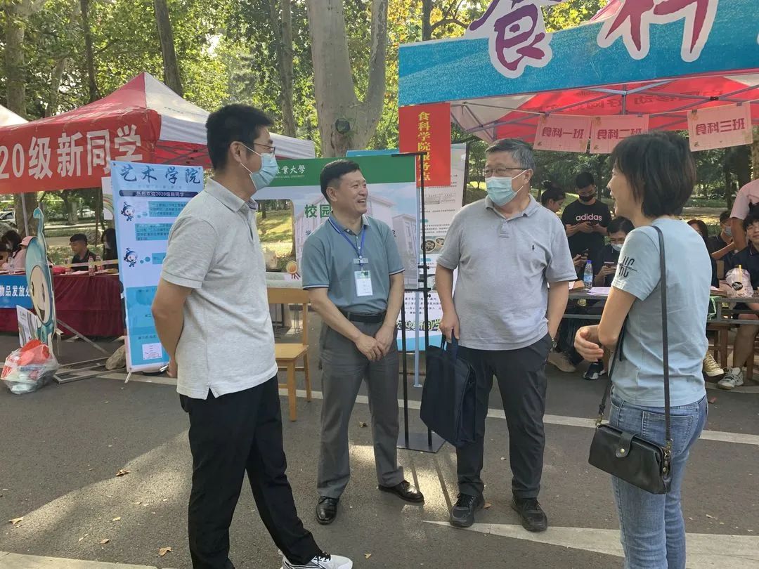 食科学院迎新活动在校本部南门开展,学院2020级班主任老师、班助、志愿者等师生参加此次活动。