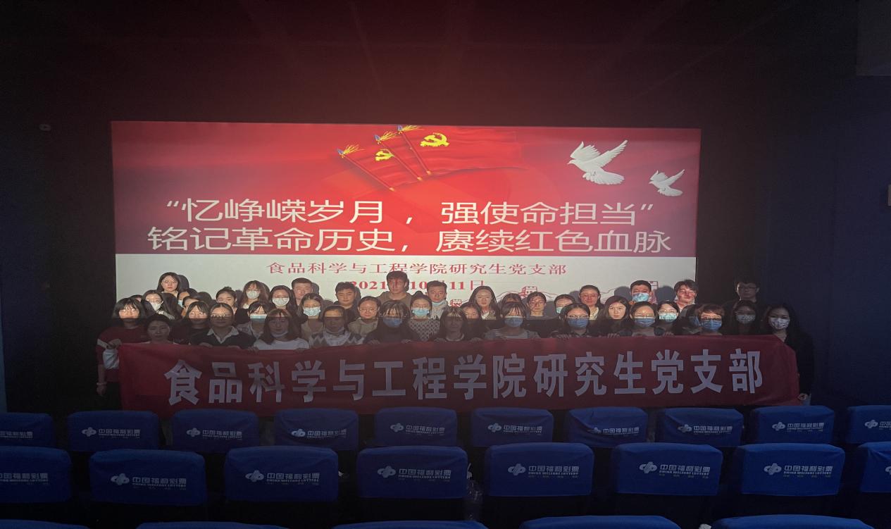 为了庆祝中国共产党成立一百周年以及新中国成立72周年,同时为了丰富党史学习教育开展形式,大力弘扬以爱国主义为核心的伟大民族精神,激发爱国热情,培养家国情怀,山东农业大学食品科学与工程学院研究生党支部于十月十一号组织观看电影《长津湖》,支部全体党员参加了此次活动。
