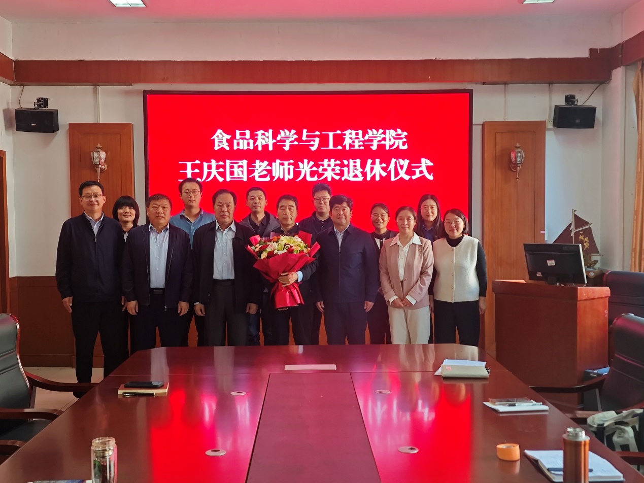 金秋送爽,情暖食科。10月14日,食科学院204会议室内暖意融融,学院为王庆国教授隆重举行光荣退休仪式。学院领导、教师代表齐聚一堂,以简朴而温馨的仪式,共同致敬王庆国教授数十年如一日的科研坚守与育人使命。