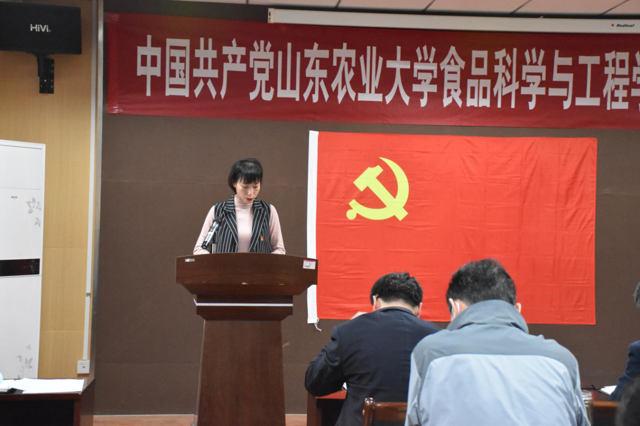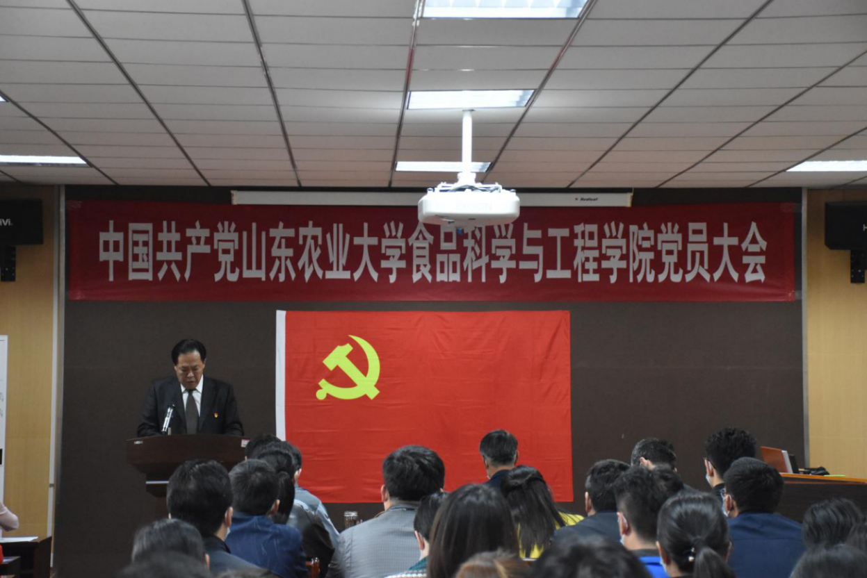 10月13日下午,中国共产党山东农业大学食品科学与工程学院党员大会在学院5楼会议室举行。大会总结学院五年来的工作,对新一届党委提出下一步工作要求,选举产生新一届学院党委领导班子。学校党委办公室、校长办公室副主任王其军同志到会指导工作,学院全体正式党员参加大会,全体预备党员列席大会。