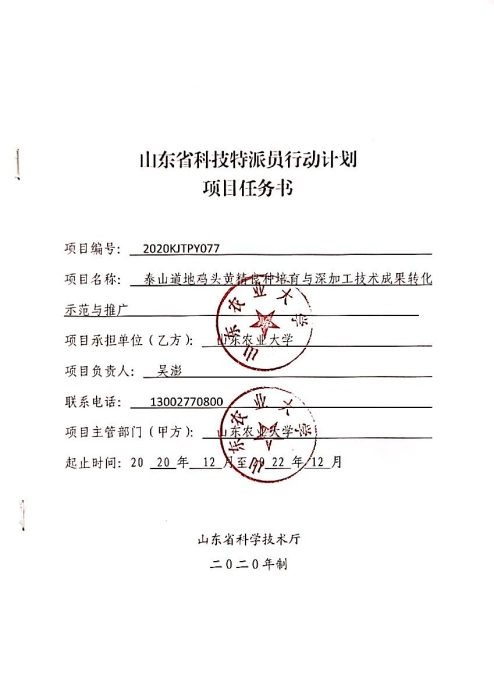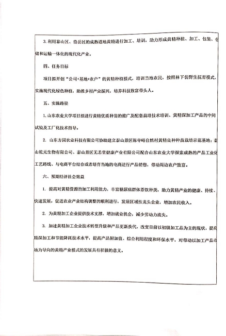 【山东省科技特派员行动计划项目】泰山道地鸡头黄精良种培育与精深加工技术成果转化示范与推广