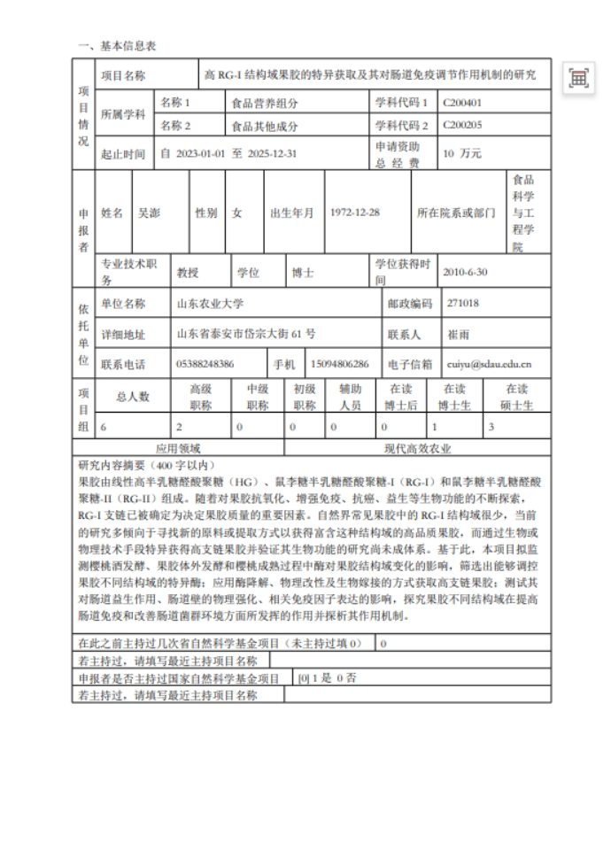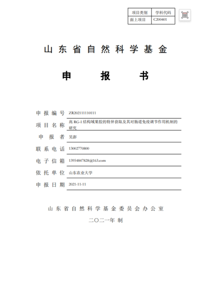 【山东省自然科学基金】高RG-I结构域果胶的的特异获取及其对肠道免疫调节作用机制的研究