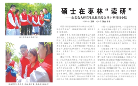 【今日乐陵公众号】今日乐陵公众号报道《“硕士来枣林“读研”丨研究生扎根乐陵金丝小枣科技小院》