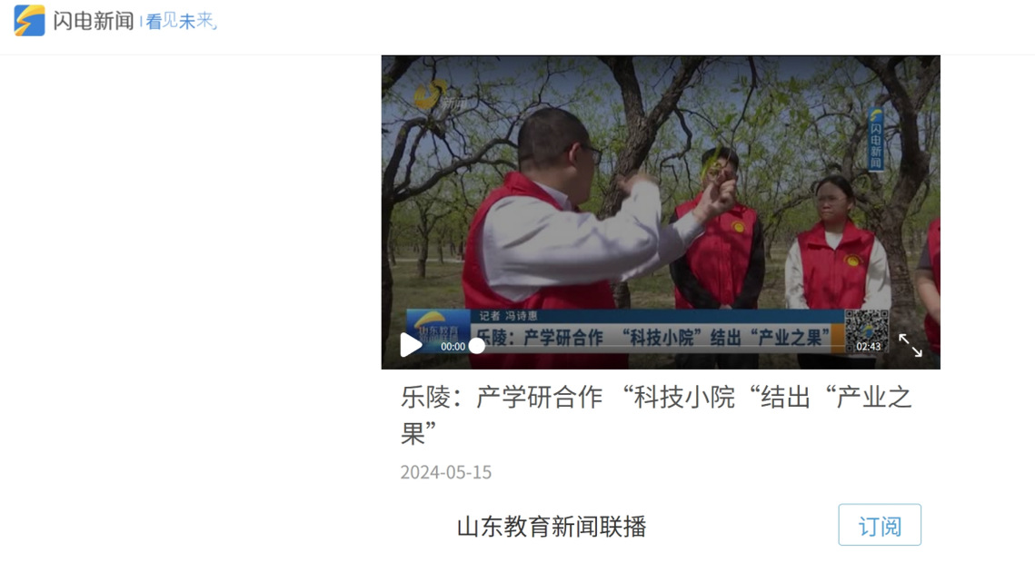 【闪电新闻】闪电新闻报道《乐陵:产学研合作“科技小院“结出”产业 之果”》