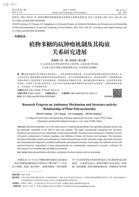 植物多糖的抗肿瘤机制及其构效 关系研究进展