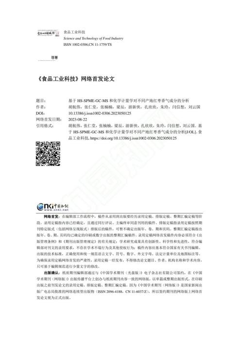 基于HS-SPME-GC-MS和化学计量学对不同产地红枣香气成分的分析