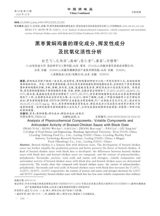 黑枣黄焖鸡酱的理化成分、挥发性成分 及抗氧化活性分析