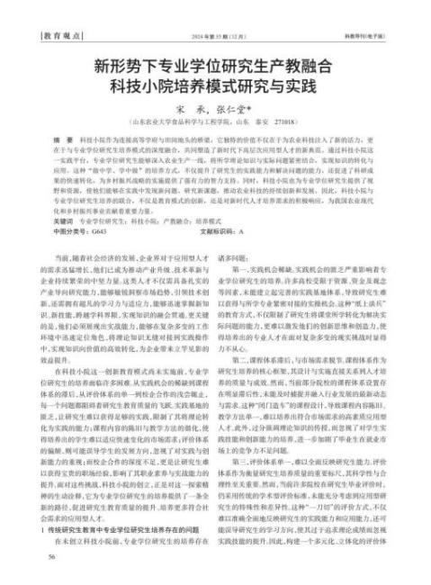新形势下专业学位研究生产教融合 科技小院培养模式研究与实践