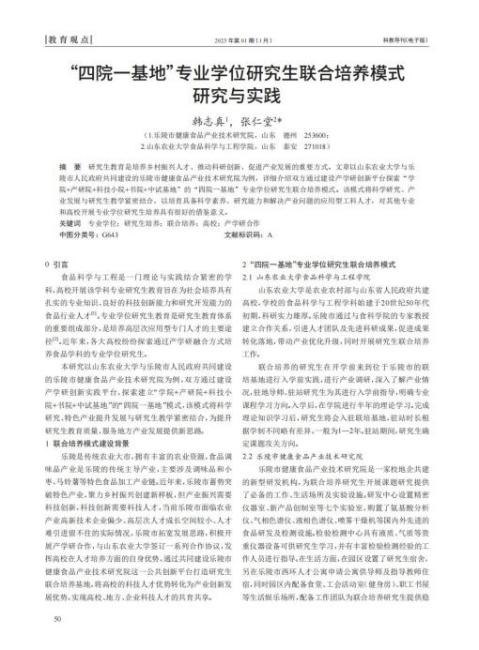 “四院一基地”专业学位研究生联合培养模式 研究与实践