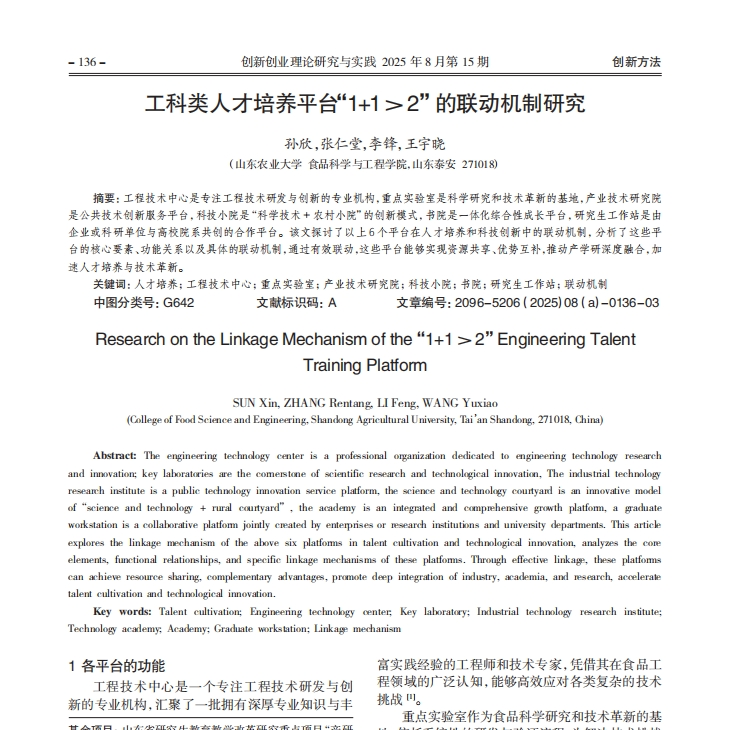 工科类人才培养平台“1+1>2”的联动机制研究