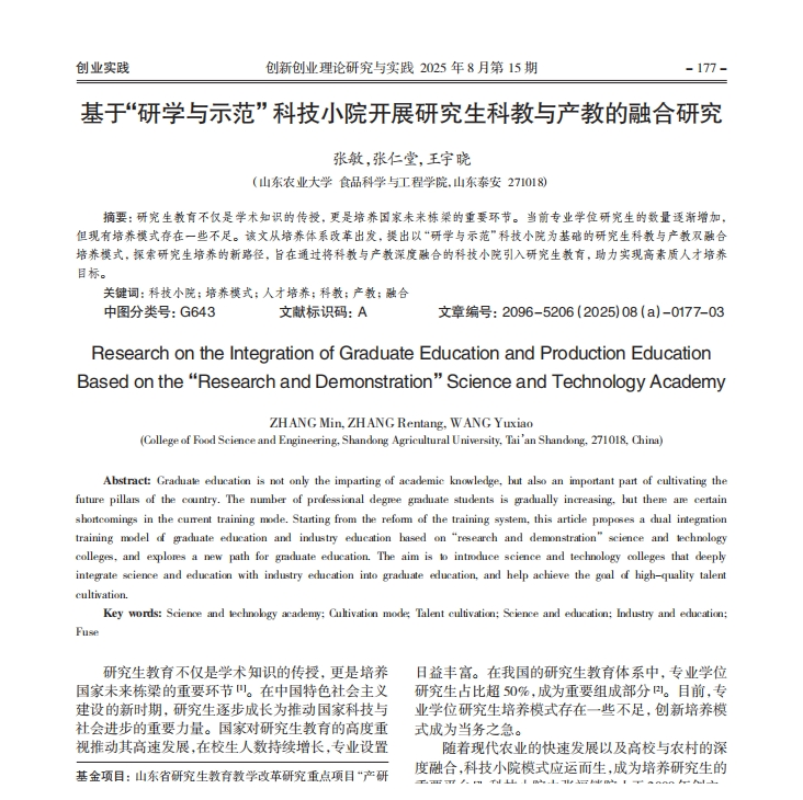 基于“研学与示范”科技小院开展研究生科教与产教的融合研究