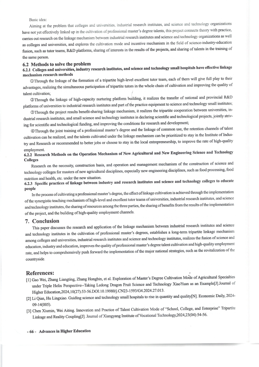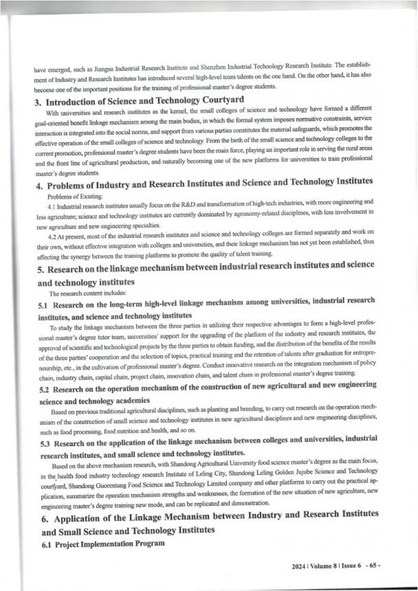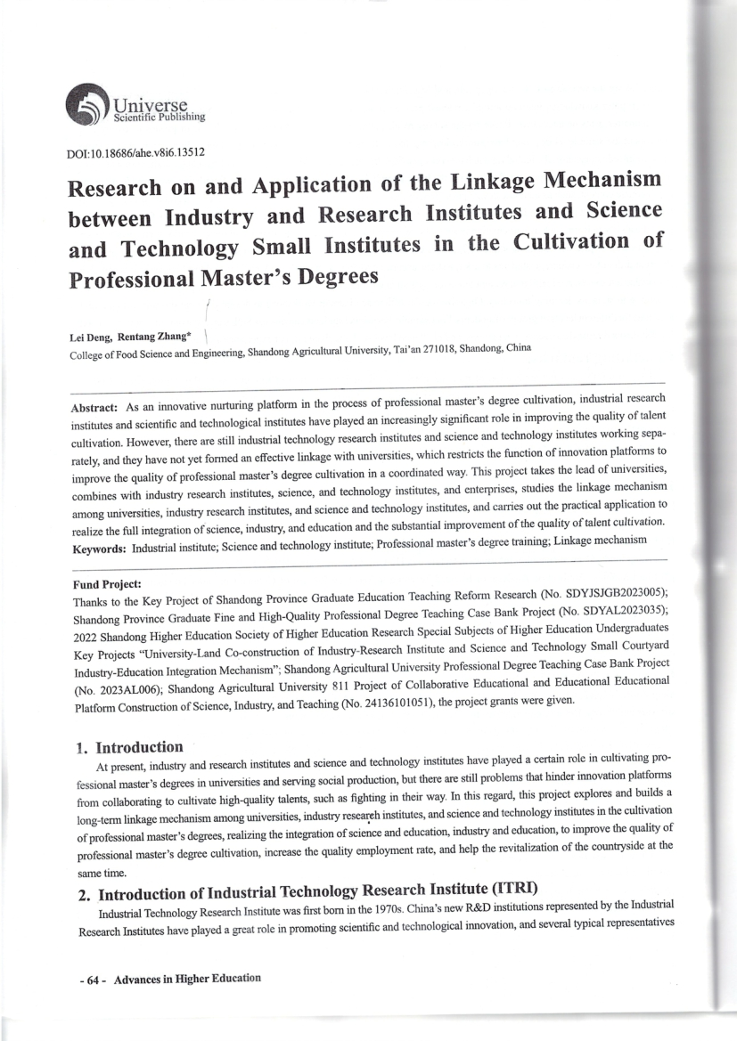 Research on and Application of the Linkage Mechanism between Industry and Research Institutes and Science and Technology Small Institutes in the Cultivation of Professional Master's Degrees