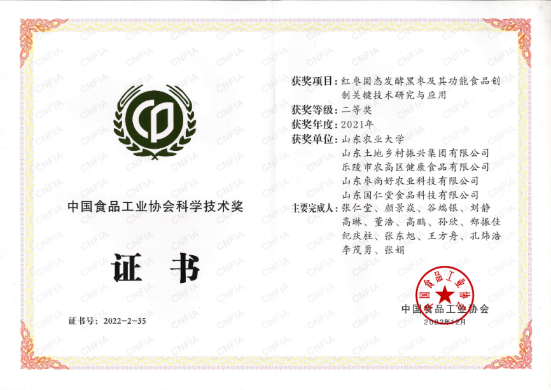 【科学技术二等奖】中国食品工业协会科学技术奖二等奖