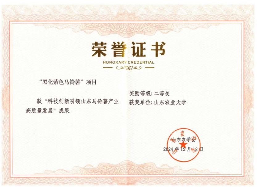 【成果二等奖】“科技创新引领山东马铃薯产业高质量发展”成果二等奖