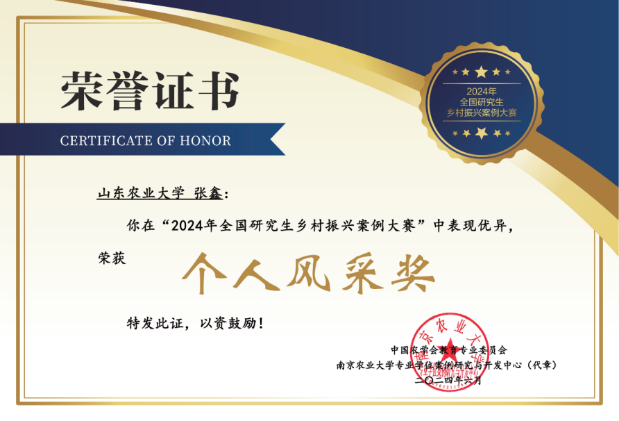 【个人风采奖】2024年全国研究生乡村振兴案例大赛”荣获个人风采奖