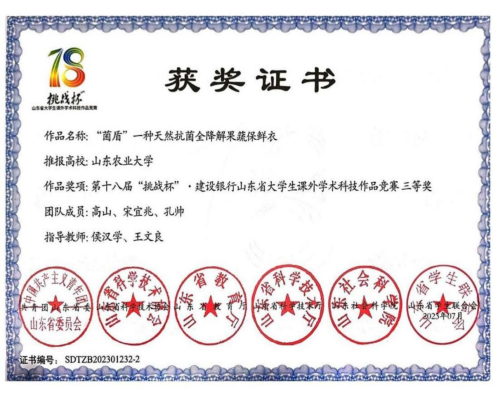 【省赛三等奖】第十八届“挑战杯”建设银行山东省课外学术科技作品竞赛三等奖