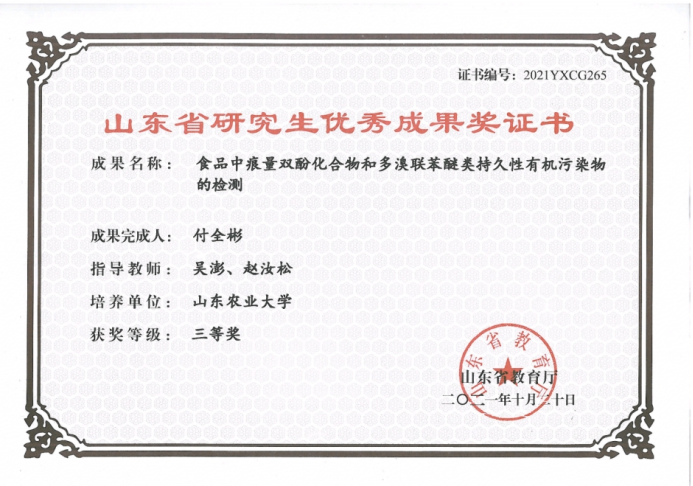 【优秀成果奖】2021山东省研究生优秀成果奖证书