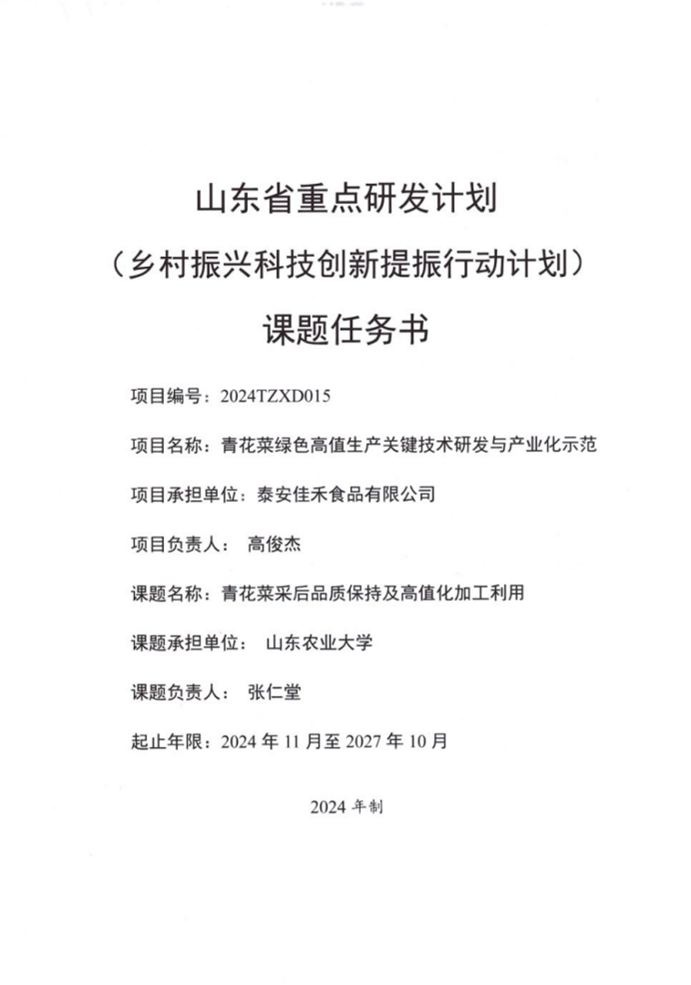 【山东省重点研发计划】青花菜绿色高值生产关键技术研发与产业化示范