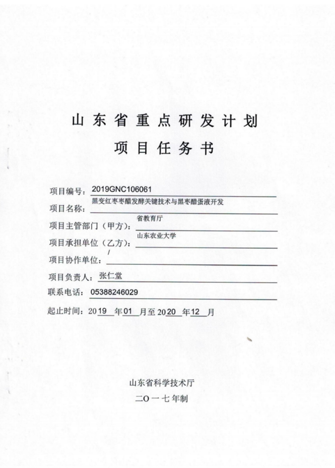【山东省重点研发计划】黑变红枣枣醋发酵关键技术与黑枣醋蛋液开发