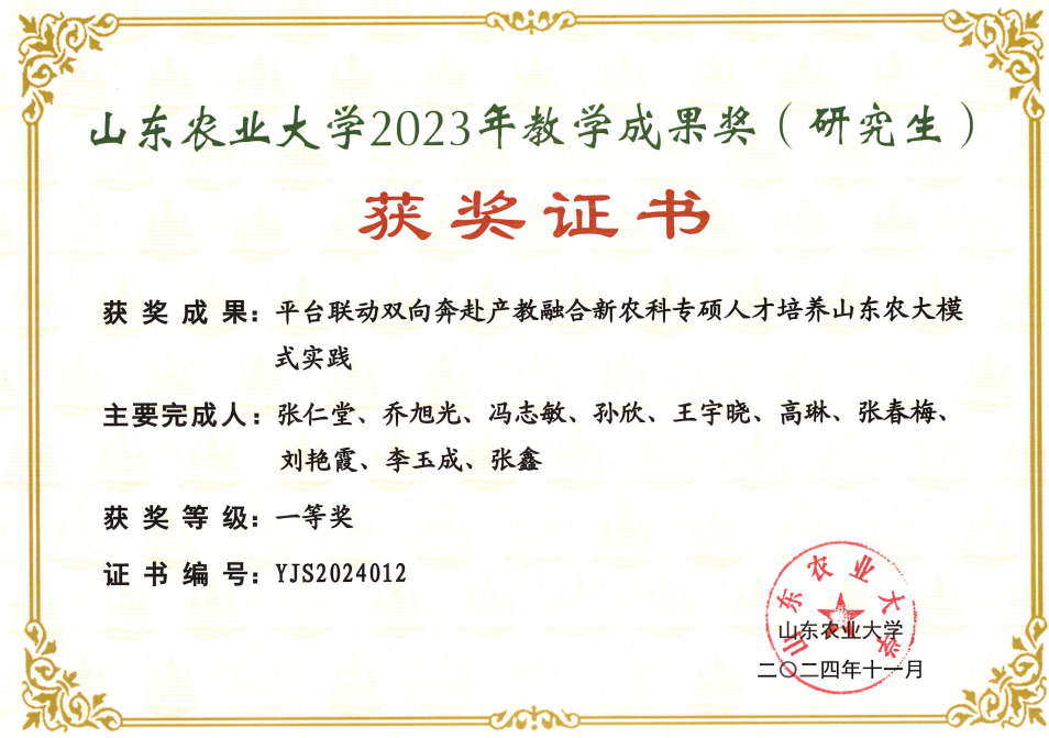 【研究生教学成果一等奖】2023 年山东农业大学研究生教学成果一等奖“平台联动 双向奔赴 产教融合 新农科专硕人才培养山东农大模式实践”