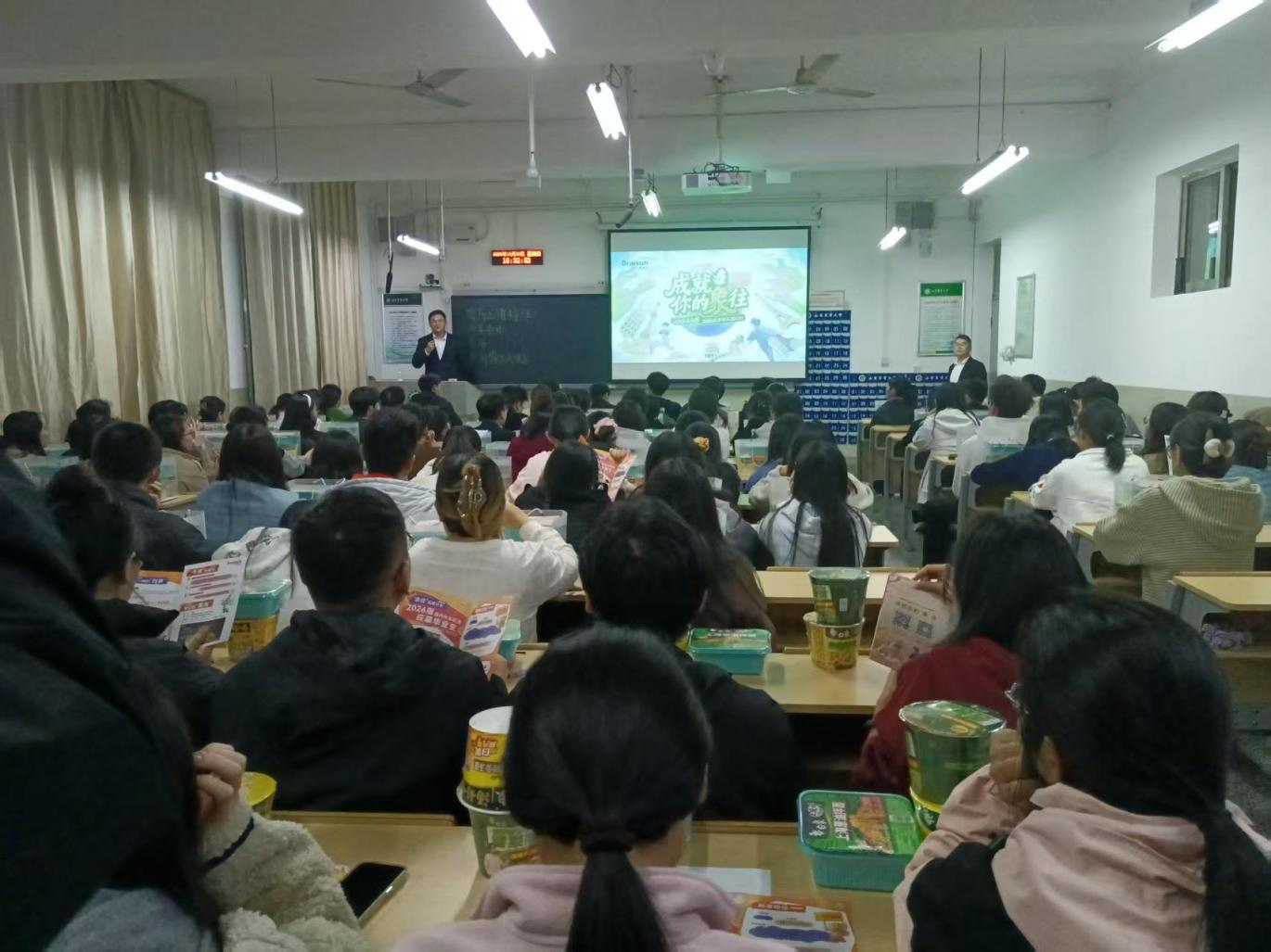 为拓宽毕业生就业渠道,搭建优质企业与学子的精准对接平台,助力毕业生实现高质量就业,近日,白象食品股份有限公司在山东农业大学岱宗校区5N203教室举办校园专场宣讲会。学院负责就业工作的相关辅导员及2026届应届毕业生代表踊跃参会,现场不仅机会纷呈,更有精美礼品相赠,氛围热烈活跃。