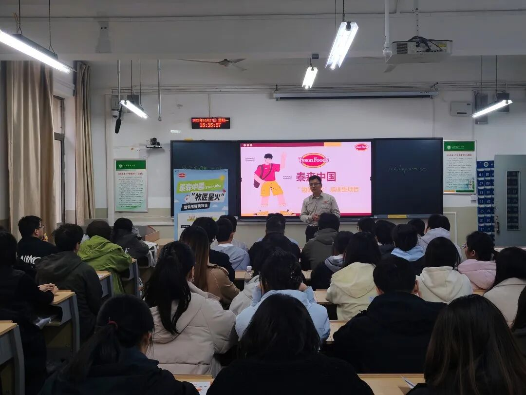为拓宽就业渠道,促进毕业生高质量充分就业,近日下午,泰森食品在岱宗校区菽睿楼举办专场招聘宣讲会。学院党委副书记孙慧敏、学院相关辅导员及2026届应届毕业生代表踊跃参会,现场互动积极,为校企精准对接搭建了良好桥梁。