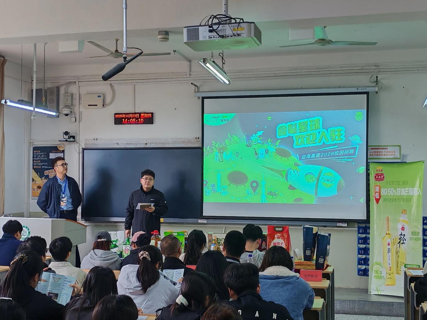 为拓宽就业渠道,促进毕业生高质量充分就业,近日下午,益海嘉里金龙鱼食品集团股份有限公司在岱宗校区菽睿楼203举办专场招聘宣讲会。学院相关辅导员及2026届应届毕业生代表参会,现场氛围热烈,为校企双方搭建了高效沟通的就业交流平台。