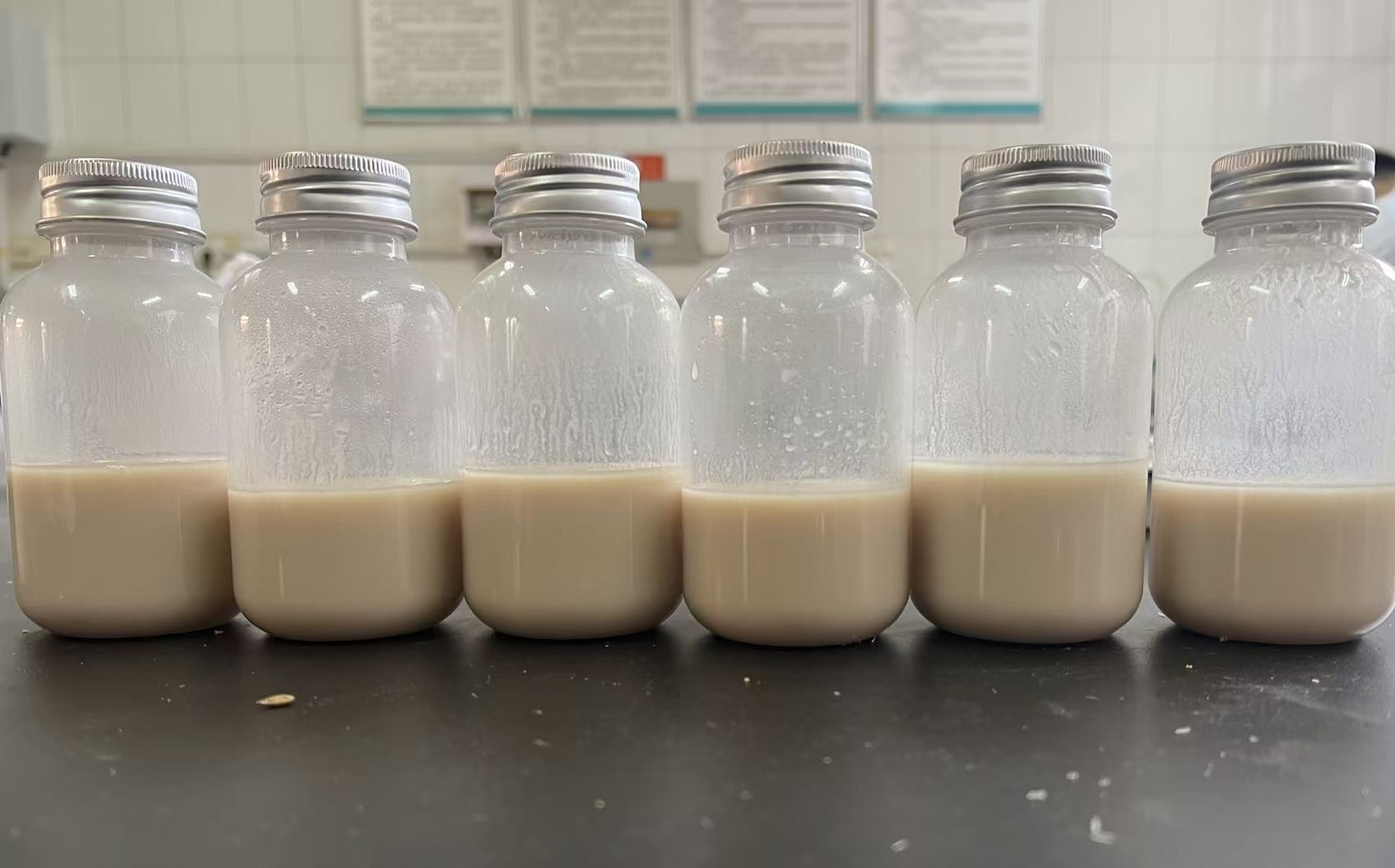 “板栗花生植物饮料是极具地域特色的饮品,但原料褐变问题一直是行业痛点,既影响产品外观,也会造成营养流失。”团队负责人刘时瑜谈及项目初衷时说道。从发现问题到攻克难题,团队的科研之路始于课堂所学,又不止于课堂。初期,成员们扎根实验室,查阅了上百篇国内外防褐化工艺相关文献。为了获取精准数据,他们反复进行板栗花生饮料实验,常常在实验室一待就是一整天。